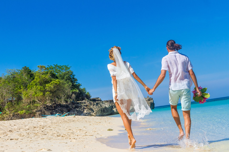 Flip-Flops und nackte Füße sind bei einer Strandhochzeit eine gute Wahl, doch beeinflussen sie die mögliche Vielfalt der Brautkleider.
