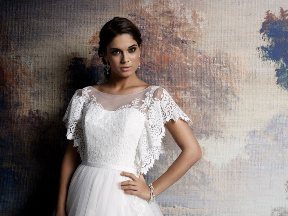 Brautkleid mit raffinierten kurzen Ärmeln.